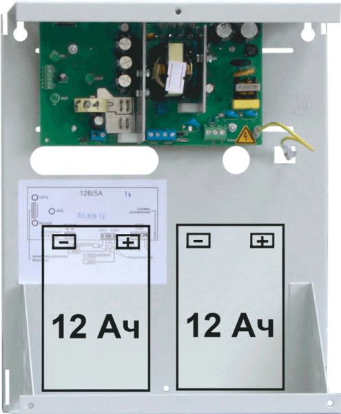 —Блок питания СКАТ-1200, 12 В, 3,5 А, кратковременно и в режиме резерва до 4 А, корпус под АКБ до